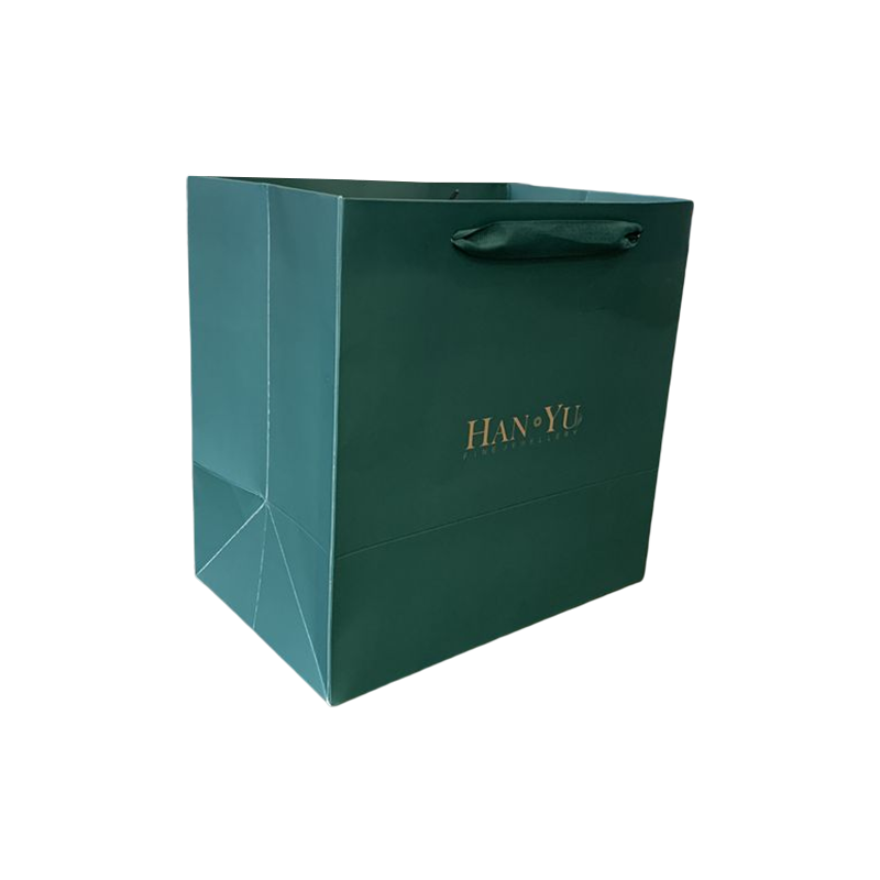 จีน ถุงของขวัญปั๊มร้อนสีเขียวเข้มแบบกำหนดเองถุงกระดาษช้อปปิ้งแบรนด์พร้อมโลโก้ 0wn ของคุณ ซัพพลายเออร์ และ