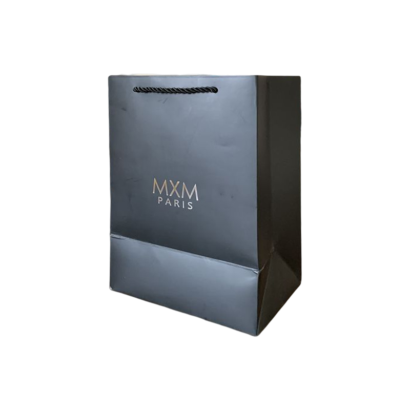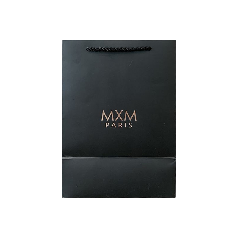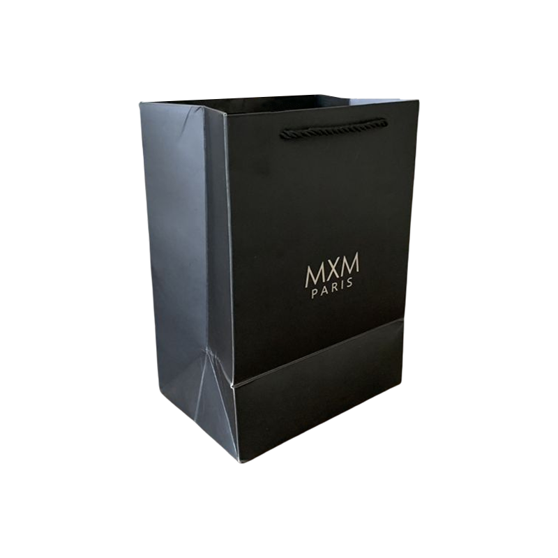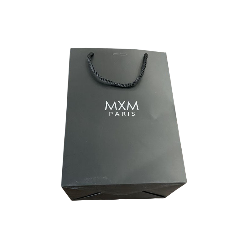 จีน กำหนดโลโก้ของคุณเอง Black Hot Stamping Shopping Bag กระเป๋าของขวัญสุดหรูถุงกระดาษส่งเสริมการขาย ซัพพลายเออร์ และ